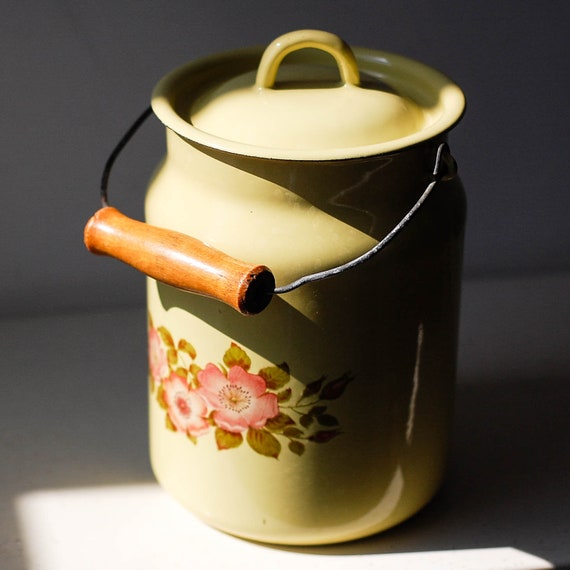 Enamel Milk Can Decor Bucket With Lid Kitchen Canisters For Etsy