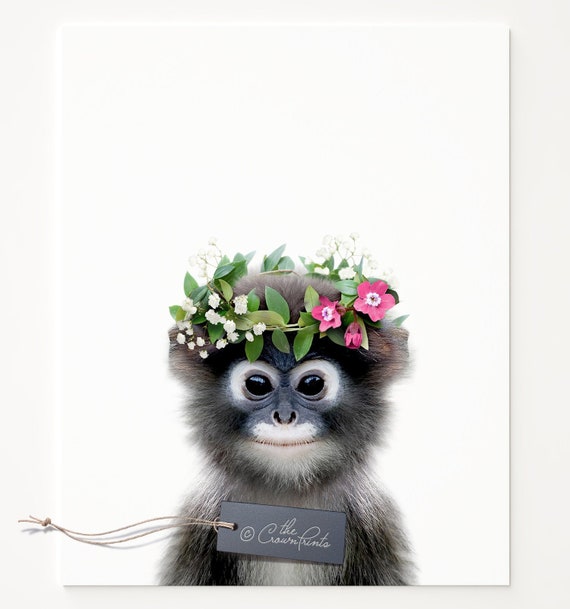 Monkey With Flower Crown Printable Nursery Girls Room Decor Etsy