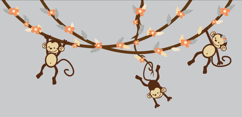 Hanging Monkey Wall Decal Monkey Nursery Decor Monkey Decal Etsy