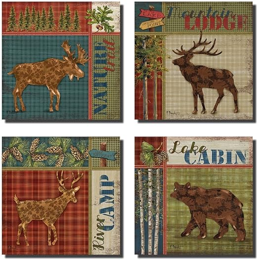 Amazon Com Gango Home Decor 4 Forest Lodge Moose Deer And Bear