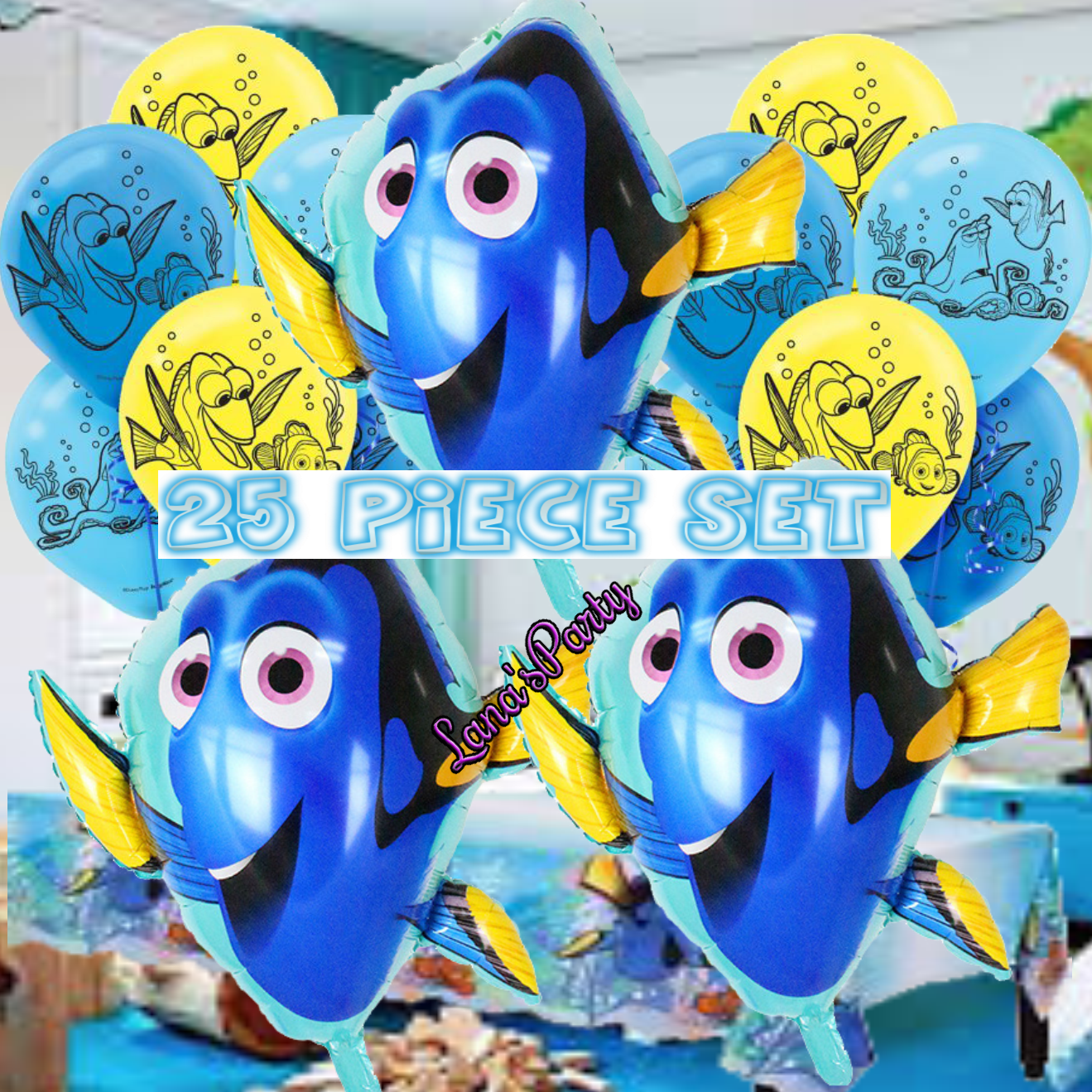 25pc Set Finding Dory Birthday Party Decorations Balloons Latex