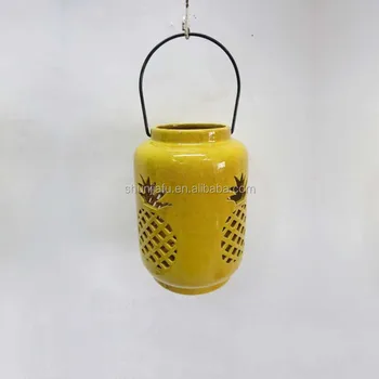 Home Garden Decor Ceramic Hurricane Lamp Pineapple Design Ceramic