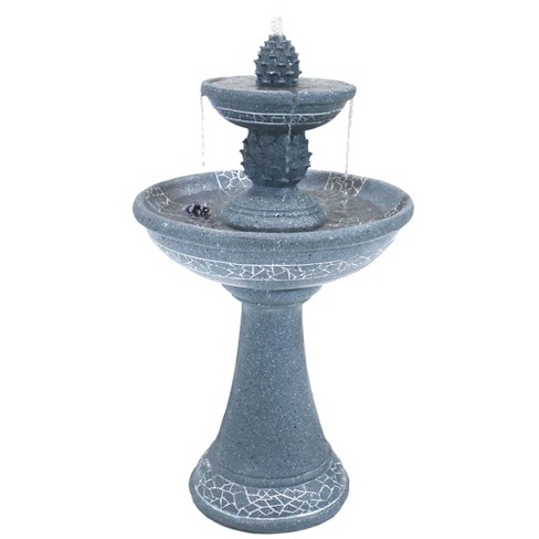 34 H Polyresin Dual Pineapple Tiered Solar Outdoor Fountain With