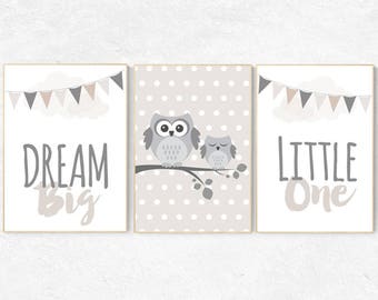 Owl Kids Art Owl Decor Art For Children Owls Nursery Art Set