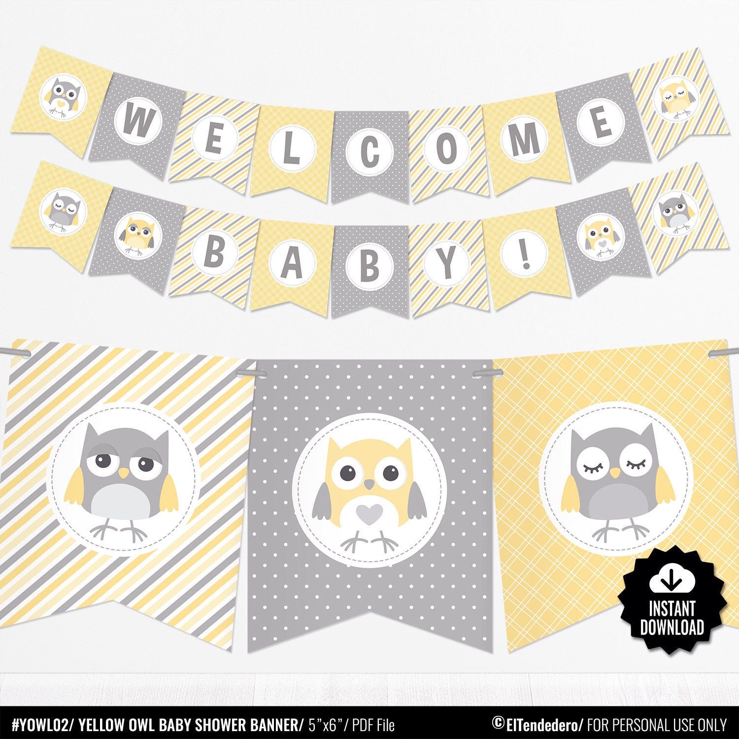 Yellow Owl Baby Shower Banner Baby Banner Yellow And Gray Etsy