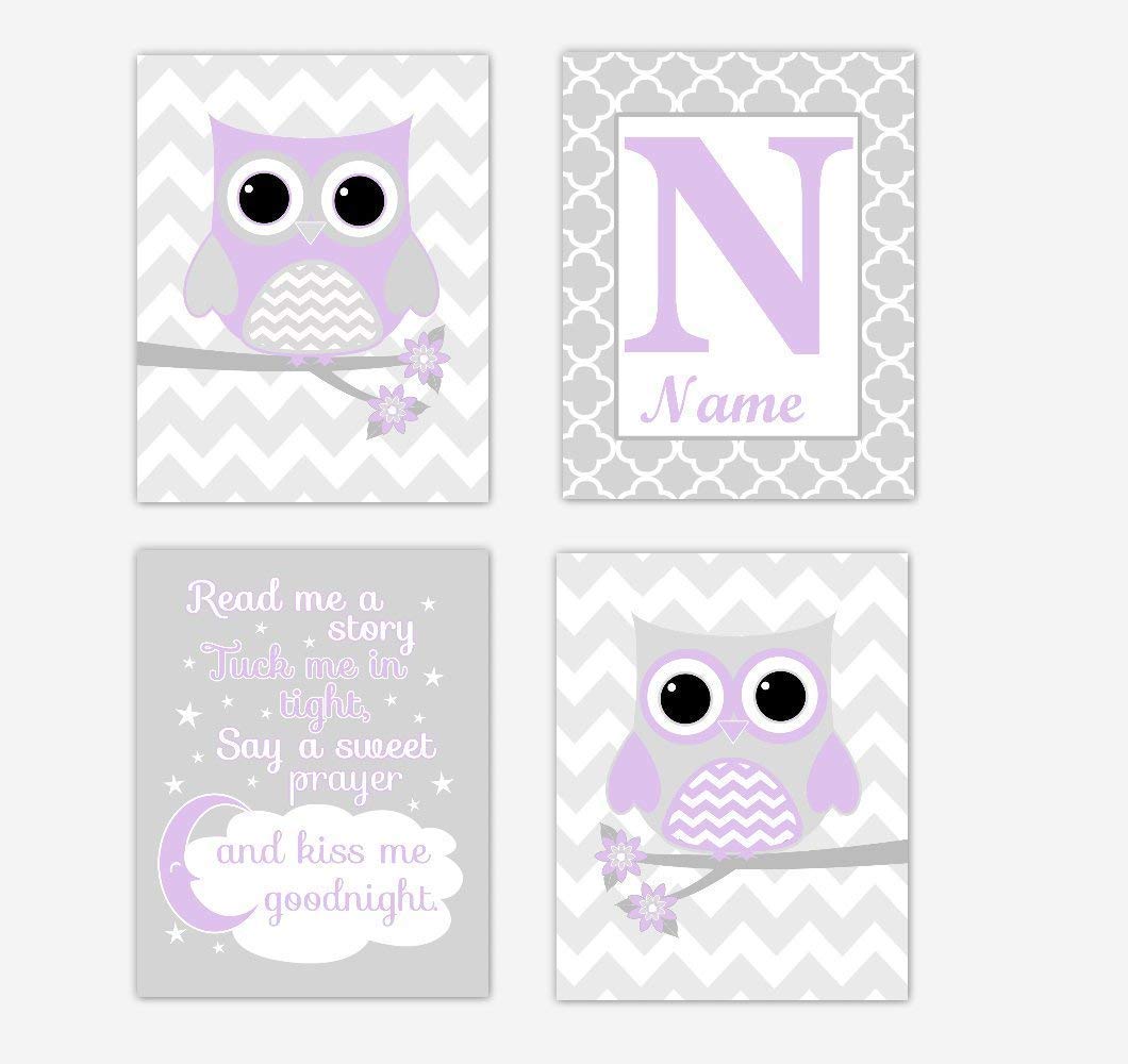 Amazon Com Purple Lavender Owl Baby Girl Nursery Art Prints