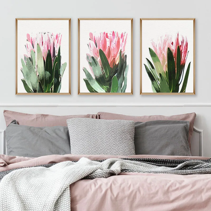 Watercolor King Protea Canvas Painting Blush Pink Wall Art