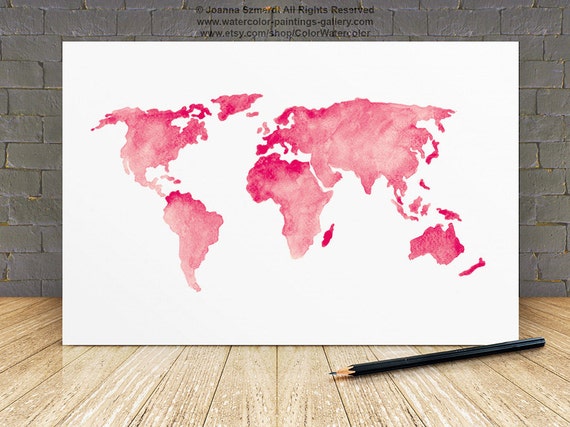 World Map Silhouette Baby Pink Wall Decor Girls Nursery Room Etsy