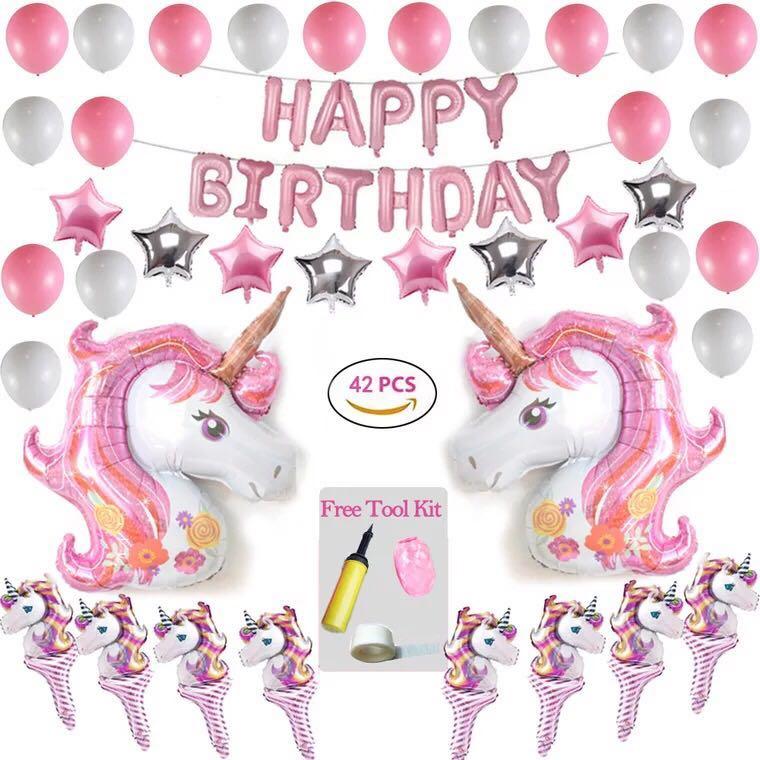 42 Pieces Set Unicorn Birthday Party Balloon Set Girl Birthday