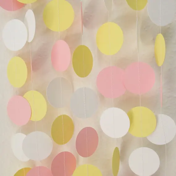 Baby Shower Garland Pastel Pink Yellow And White Circle Garland
