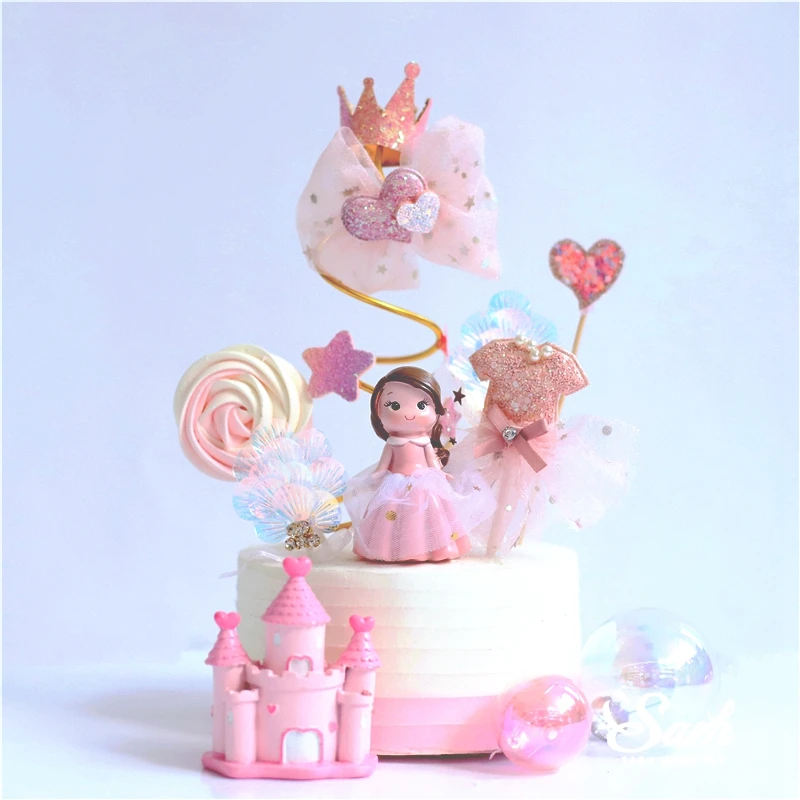 Spiral Yarn Star Happy Birthday Cake Topper Pink Gauze Princess