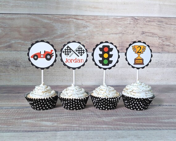 Race Car Cupcake Toppers Race Car Cupcake Toppers Two Fast Etsy