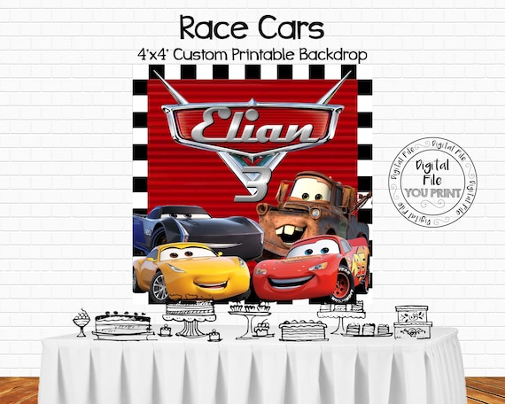 Printable Cars Backdrop Cars Birthday Party Decorations Race Etsy