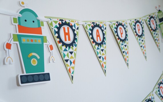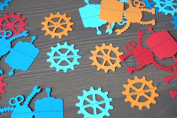 Robot Party Garland Robots And Gears Decorations Etsy