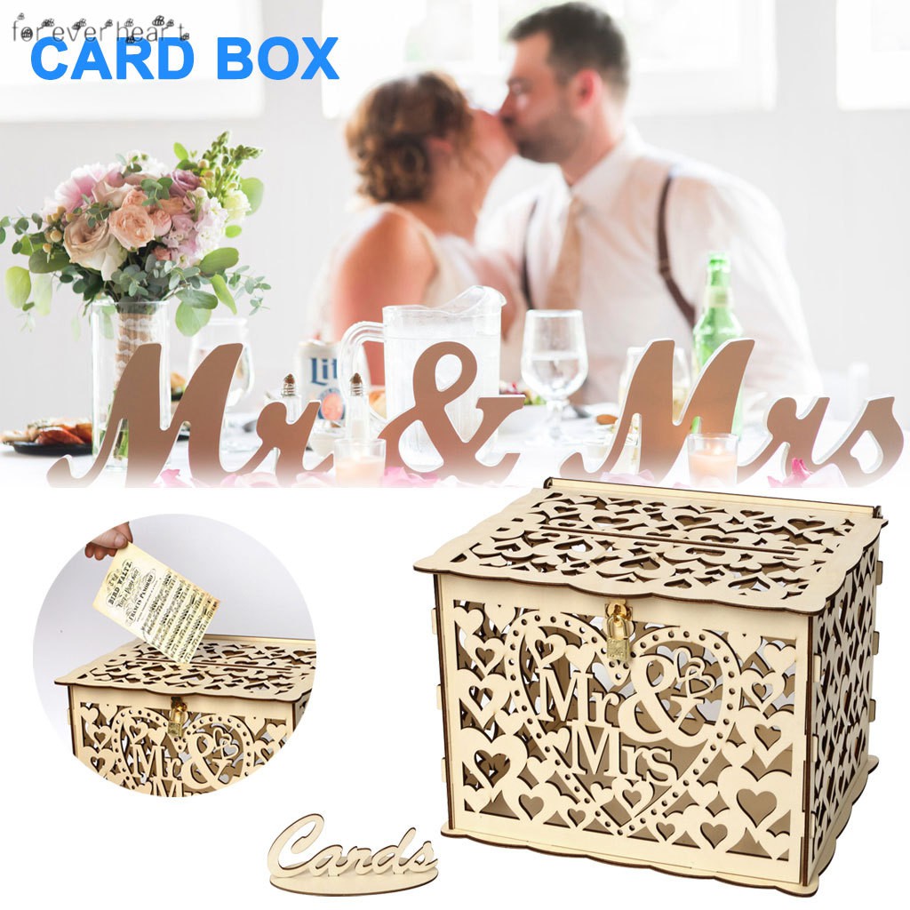 Diy Wooden Wedding Card Box With Lock And Slot For Rustic