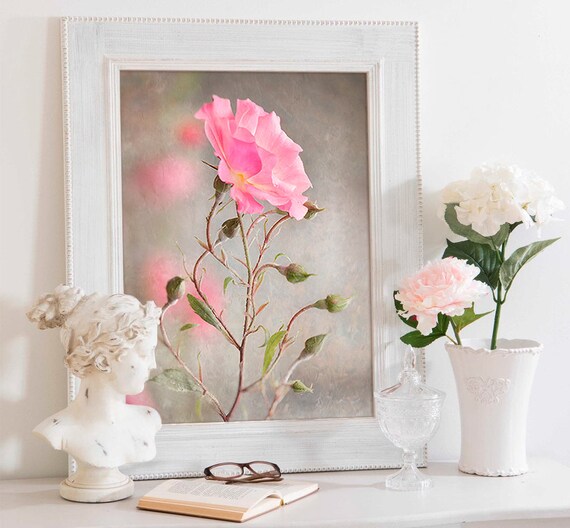 Pink Rose Print Pastel Room Decor Shabby Chic Bedroom Decor Etsy