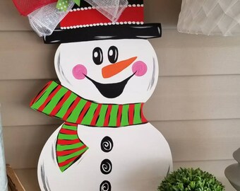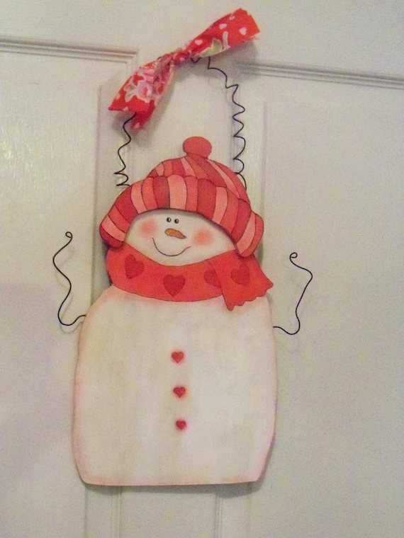Wooden Snowman Door Hanger Valentine Snowman Door Decoration Etsy