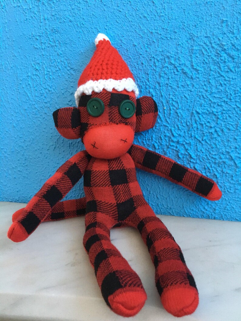 Plaid Santa Claus Sock Monkey With Santa Hat Holiday Etsy