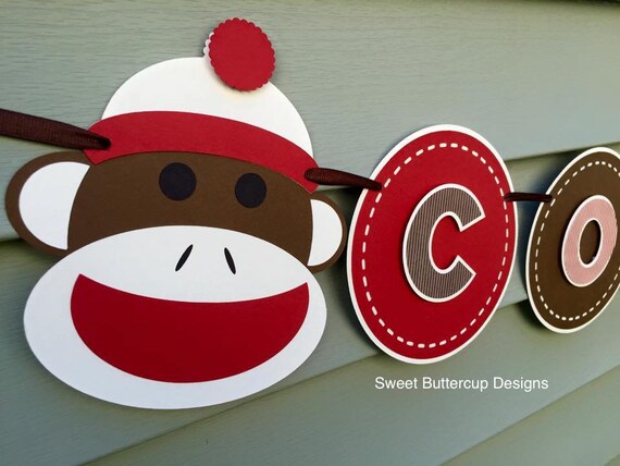 Sock Monkey Party Banner Sock Monkey Birthday Sock Monkey Etsy