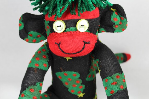 Sock Monkey Christmas Trees Black Red Green Yellow Etsy