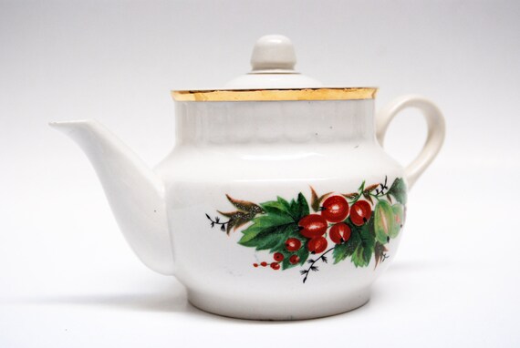 Small Vintage Kettle Strawberry Ceramic Teapot Retro Straw Berry
