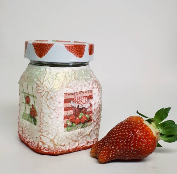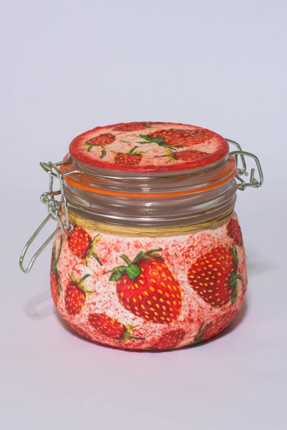 Strawberry Kitchen Decor Canister Fruit Red Decor Decoupage Etsy