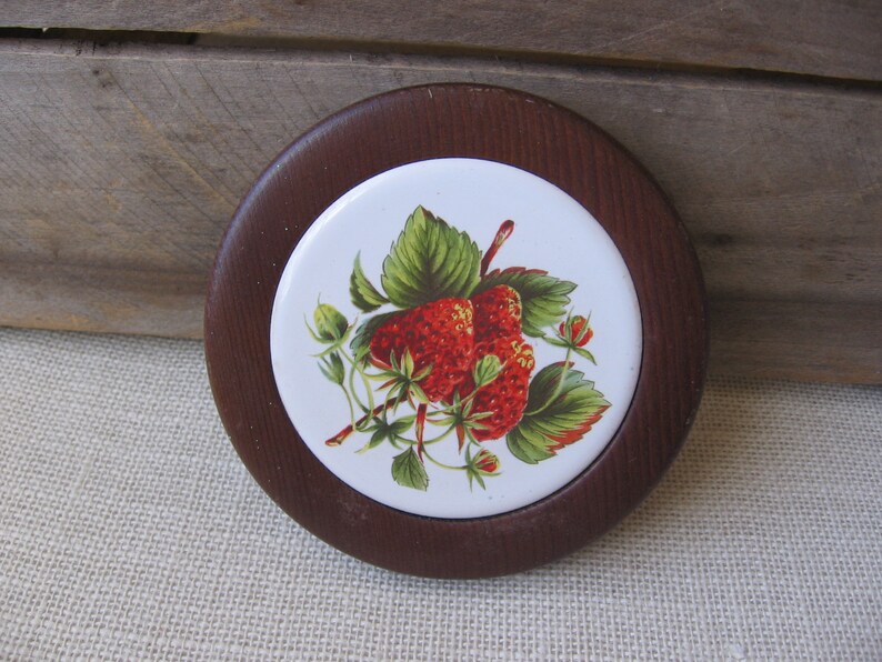 Small Round Strawberry Ceramic Tile And Wood Trivet Etsy