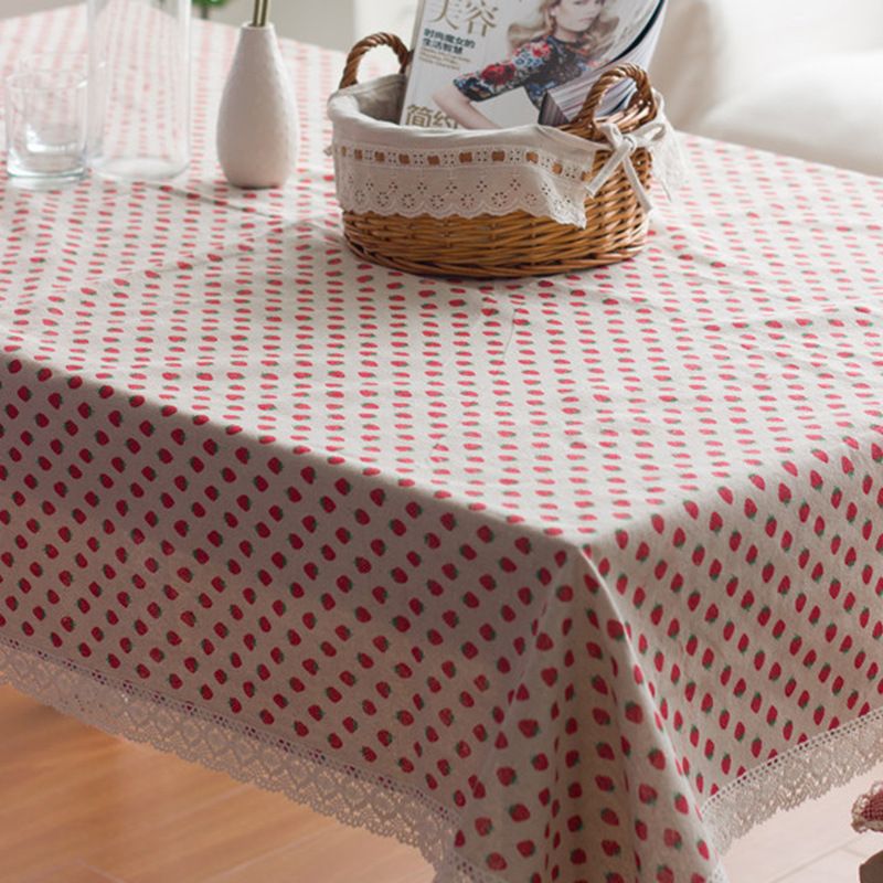 Handmade Boho Red Strawberry Cotton Linen Tablecloth New Home
