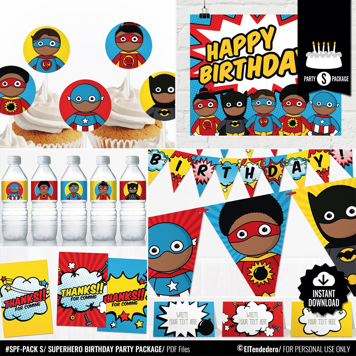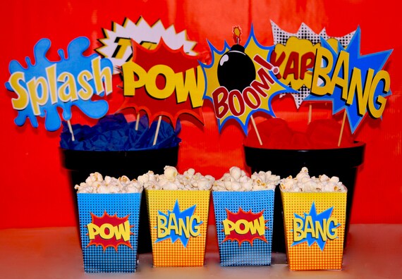 Superhero Birthday Decorations Package Printable Comic Book Etsy