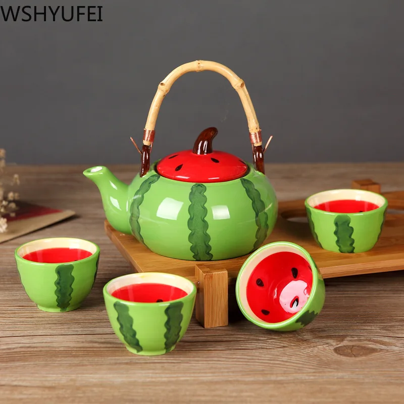 Chinese Style Ceramic Teapot Kettles Tea Cup Fruit Watermelon Tea