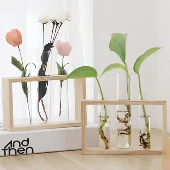 Glass Test Tube Vase Bottle In Wooden Stand For Plant Flower