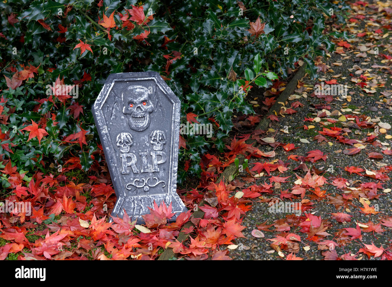 Halloween Tombstone Decorated With Skulls And Rest In Peace Rip