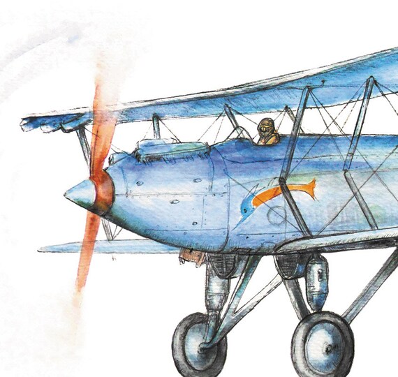 Airplane Decor Nursery Vintage Airplane Prints Watercolor Set Etsy