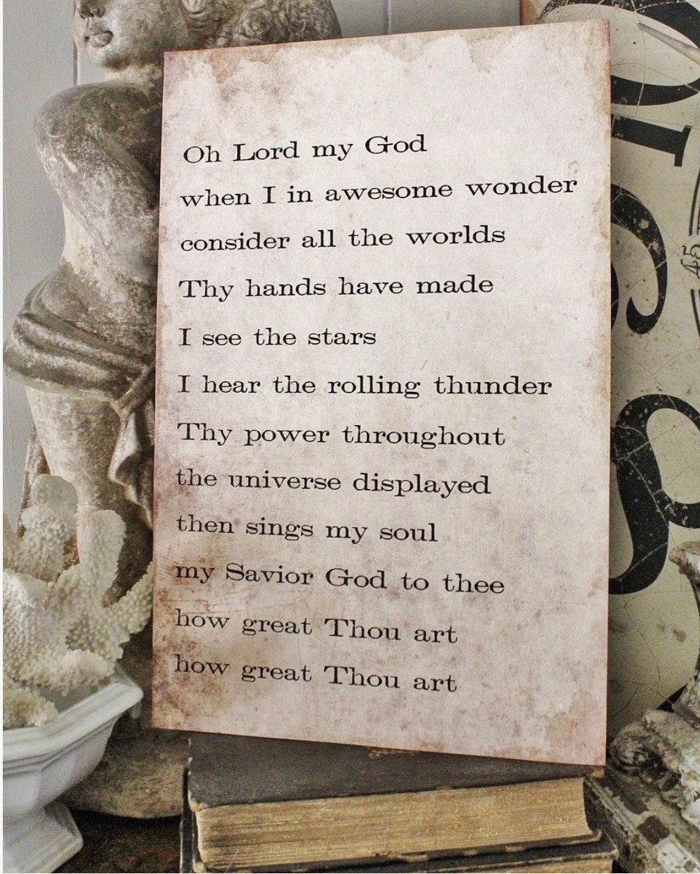 How Great Thou Art Hymn Sign Wood Vintage Farmhouse Decor Poster