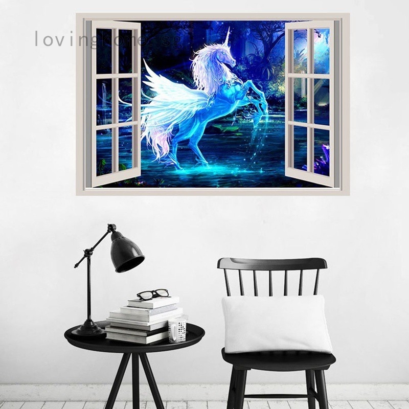 3d Effect Window Wall Sticker Pegasus Unicorn Sticker Art Vinyl