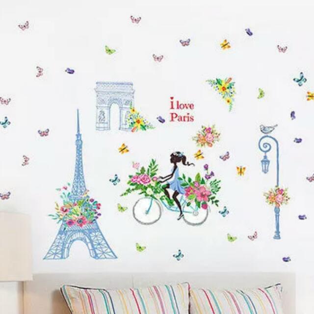 Eiffel Tower Flower Girl Bicycle Wall Stickers Decal Home Art