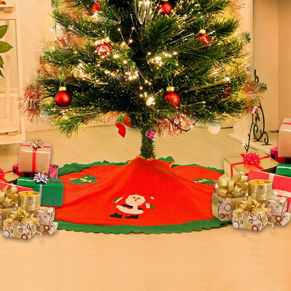 90cm Red Christmas Tree Skirt With Santa Claus Elk Green Edge