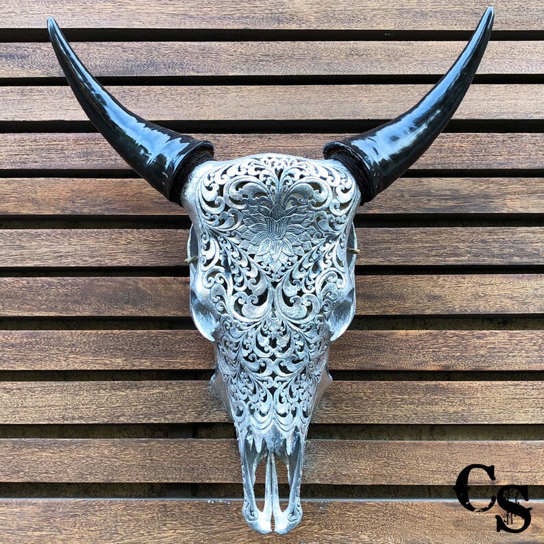 Real Carved Cow Skull Head Mandala Design Bull Skull Steer Etsy