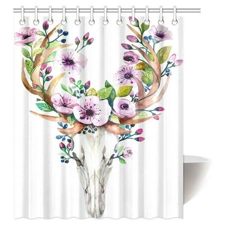 Mypop Deer Skulls Decor Shower Curtain Animal Skull With Floral