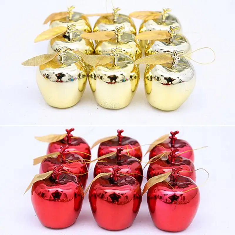 12pcs Red Gold Apples Christmas Trees Decorations Festive Party