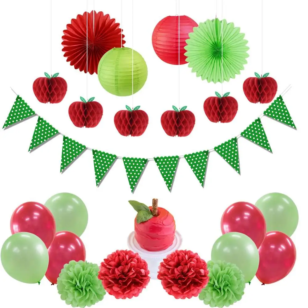 25pcs Red Apple Decorations Tissue Paper Banners Garland Diy Pom