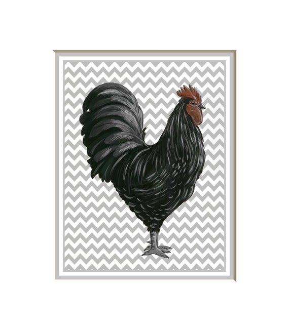 Rooster Kitchen Decor Art Print Black Rooster Gray And White Etsy