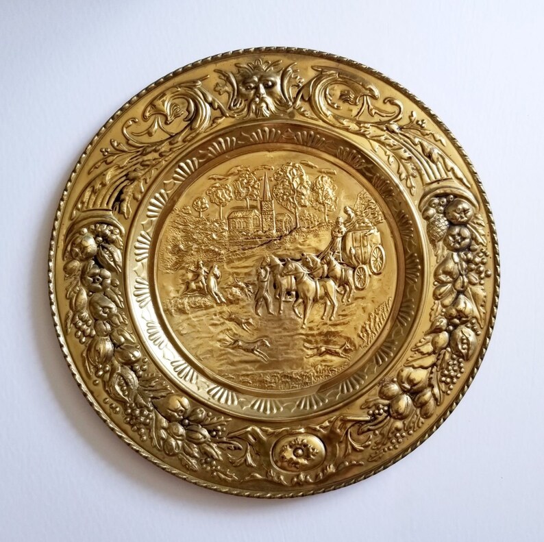 20 Vintage Embossed Brass Wall Plaque Horses Hounds Etsy