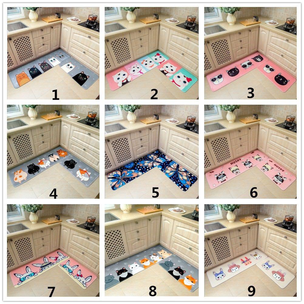 2pcs Set Cute Cat Butterfly Kitchen Mat Carpet Rug Furniture