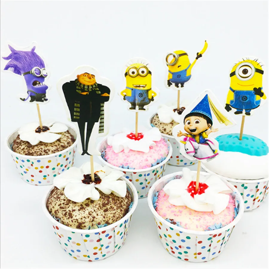 24pcs Minions Cake Topper Cupcake Toppers Cake Decoration Birthday