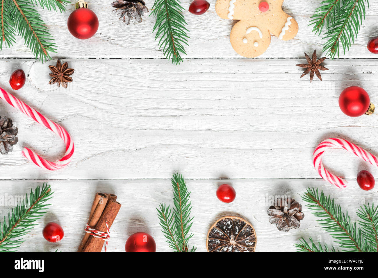 Christmas Frame Made Of Fir Branches Decorations Berries Candy