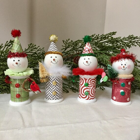 Old Fashioned Snowman Ornaments With Bottlebrush Tree Wreath Etsy