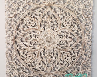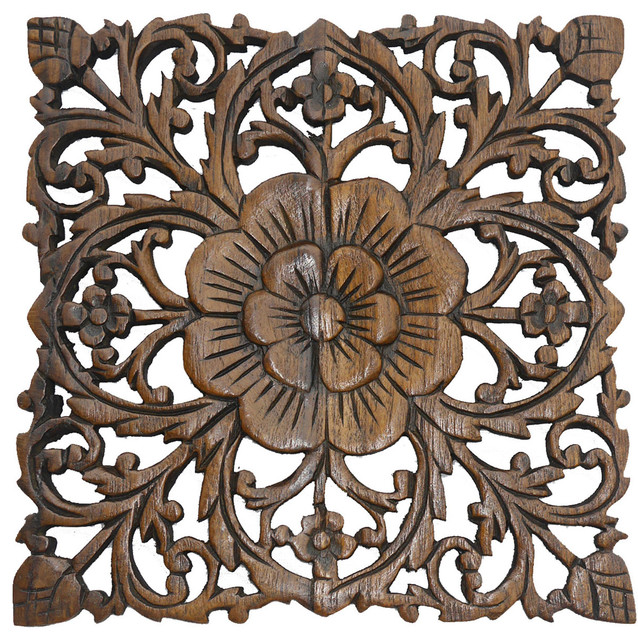 Buy Thai Oriental Lotus Carved Wood Wall Art Decor Online
