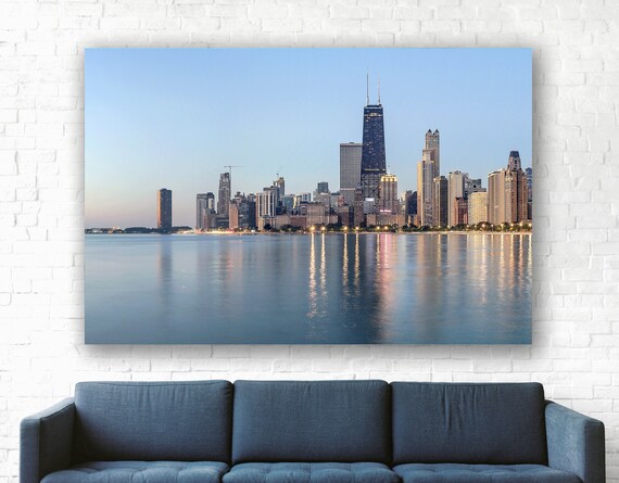 Chicago Skyline Cityscape Sunset Chicago Wall Decor Etsy