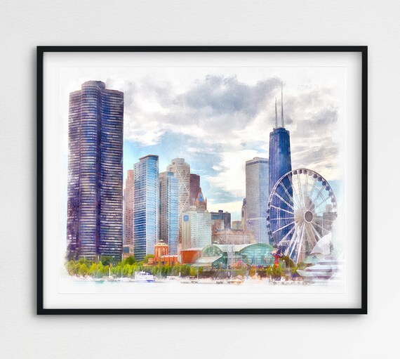 Amazon Com Chicago Skyline City Chicago Watercolor Art Print